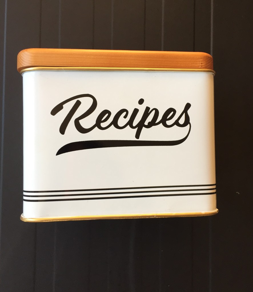 I thought it would be fun to add recipes to the new recipe box, so I added them as well. Even inside of the lid for a bit of a creative touch.