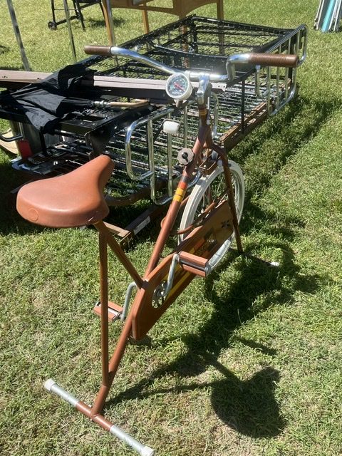 It’s our first time doing a multiple town yard sale in one day. Honestly, it’s been super fun. I had no idea I’d see toilets for sale or a drinking fountain. We saw a 1950’s bicycle, a church alter table type thing, and I saw an exercise bike like my grandma used to have!