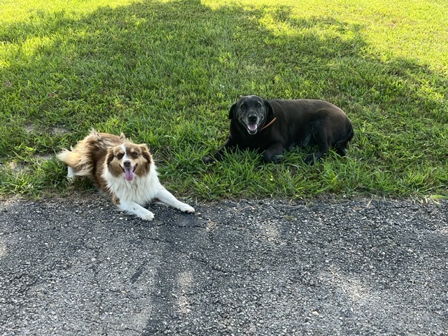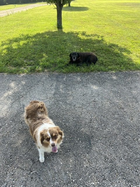 You have a calico? What’s its name? I have a calico kitten named Millie. Her nose is half pink. Ha ha. Australian Shepherds are definitely cute- I got these two because they were *suppose to be* small and I thought “lap dogs.” Roam is little. Tugg is a solid 40 pounds.
