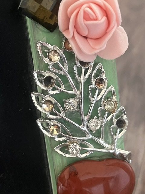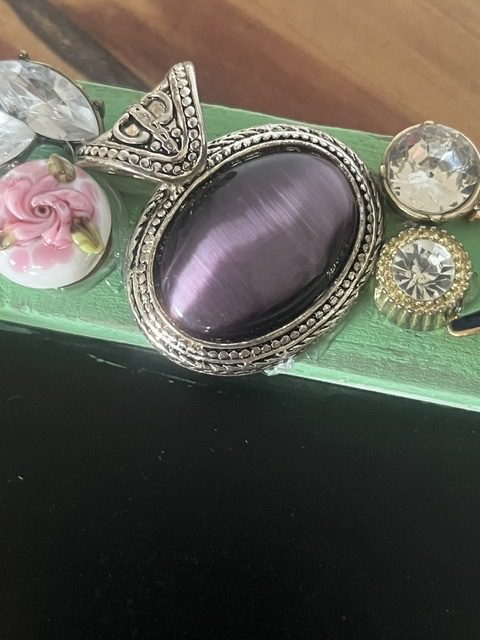When I buy vintage jewelry for art, I try to get items that have flat backs. Flat backs are easier to glue on things like canvas, for instance.