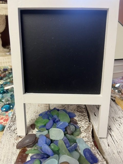 Remember that chalkboard makeover I did? Well, I got on eBay and found 2 under $5 each and ordered them. They arrived yesterday, too. I guess they made friends with the glass, ha ha, because when I sat down, I knew I wanted to use the glass and chalkboards together.