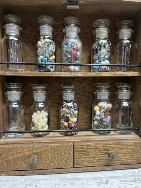 Other reused items that I use, are for jewelry and bead storage. Sometimes I have lots of jewelry to create with, so I try to keep the space somewhat organized.