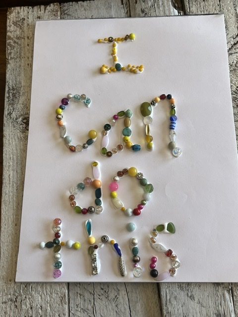 When you’re finished, it will look something like this. Our handwriting and our beads will be different, of course, but it will say: I can do this.