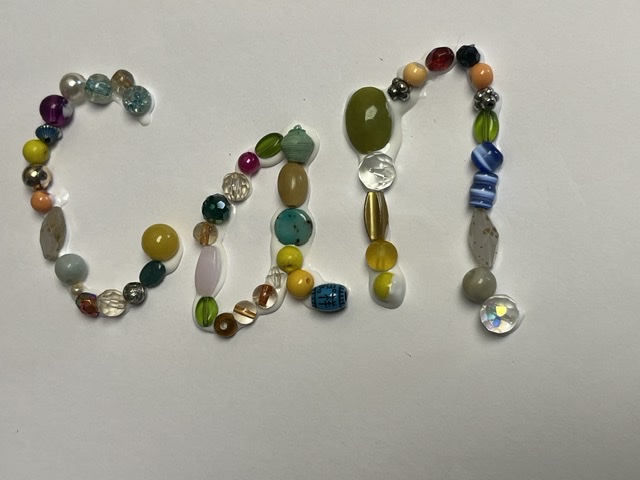 Fill in the glue on the word do with beads.