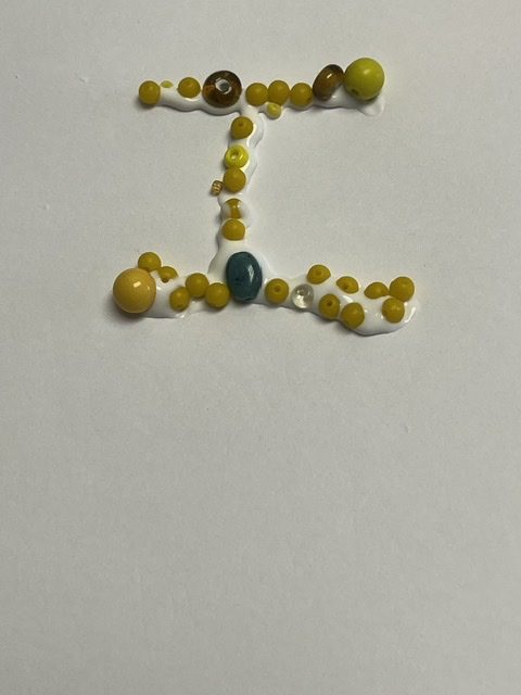 Fill in the glue on the word I with beads.