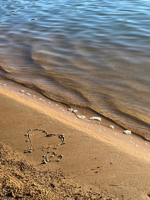 Taking advantage of the nice weather is always a good idea. It’s so nice that you and your son do so many activities together. The hearts on the shore are adorable.